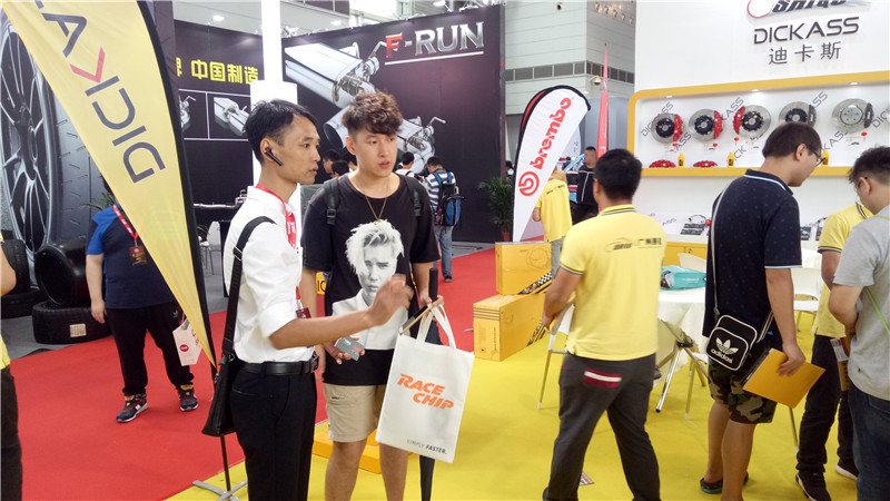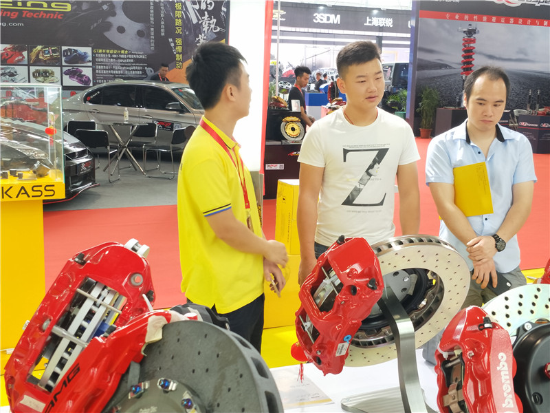 這次展會(huì)上匯聚多種改裝品牌中,其中廣州賽驅(qū),帶來AP、brembo、DICKASS等工藝精湛剎車品牌,為廣大前來觀展的提供專業(yè)的剎車改裝方案,整個(gè)展會(huì)氣氛十分熱烈,館內(nèi)人流涌動(dòng);前線的同事也是熱情認(rèn)真的解答每位前來了解的商家